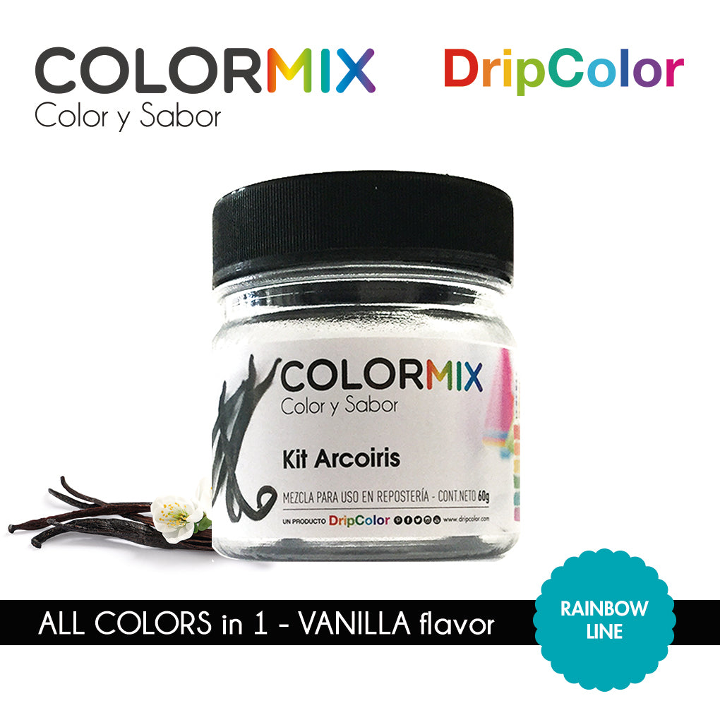 Dale un toque diferente a tus productos de panadería con ColorMix Rainbow. Esta línea incluye 6 colores diferentes con sabor a vainilla. Ideal para tortas, galletas, piononos, budines, merengues, macarons, cremas cocidas (crema pastelera, crema catalana, creme brulée) y más..!! Puedes usarlo en premezclas de postres y tortas. Cada bote contiene 60gr.