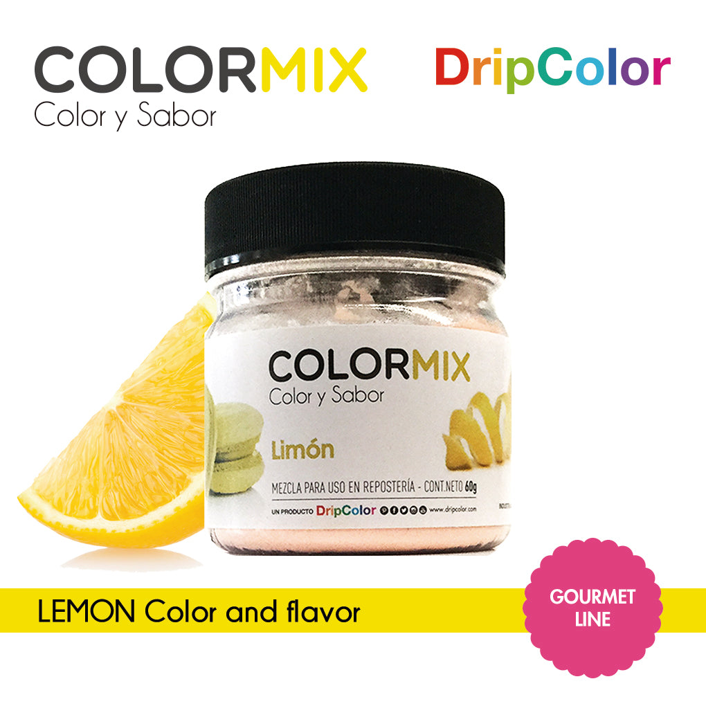 Color amarillo y sabor a limón. Colorante en polvo 100% comestible. Dale un toque diferente a tus productos de panadería con ColorMix. Los mejores aromas y sabores para tus preparaciones. Ideal para tortas, galletas, piononos, budines, merengues, macarons, cremas cocidas (crema pastelera, crema catalana, creme brulée) y más..!! Puedes usarlo en premezclas de postres y tortas. Cada bote contiene 60gr.