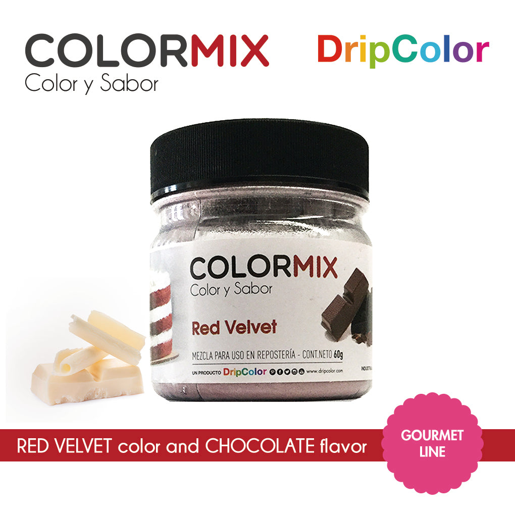 Color rojo terciopelo y sabor a chocolate Colorante en polvo 100% comestible. Dale un toque diferente a tus productos de panadería con ColorMix. Los mejores aromas y sabores para tus preparaciones. Ideal para tortas, galletas, piononos, budines, merengues, macarons, cremas cocidas (crema pastelera, crema catalana, creme brulée) y más..!! Puedes usarlo en premezclas de postres y tortas. Cada bote contiene 60gr.