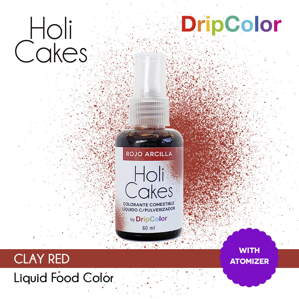 Color rojo arcilla Colorante líquido 100% comestible. Holi Cakes es una línea de colorantes alimentarios líquidos para aerógrafos; ideal para dar acabados coloridos a Fondant, merengues, royal glacé y papel de arroz. ¡Aplicas el producto directamente en tus creaciones usando la nueva tapa de spray! Cada unidad contiene 60 ml.