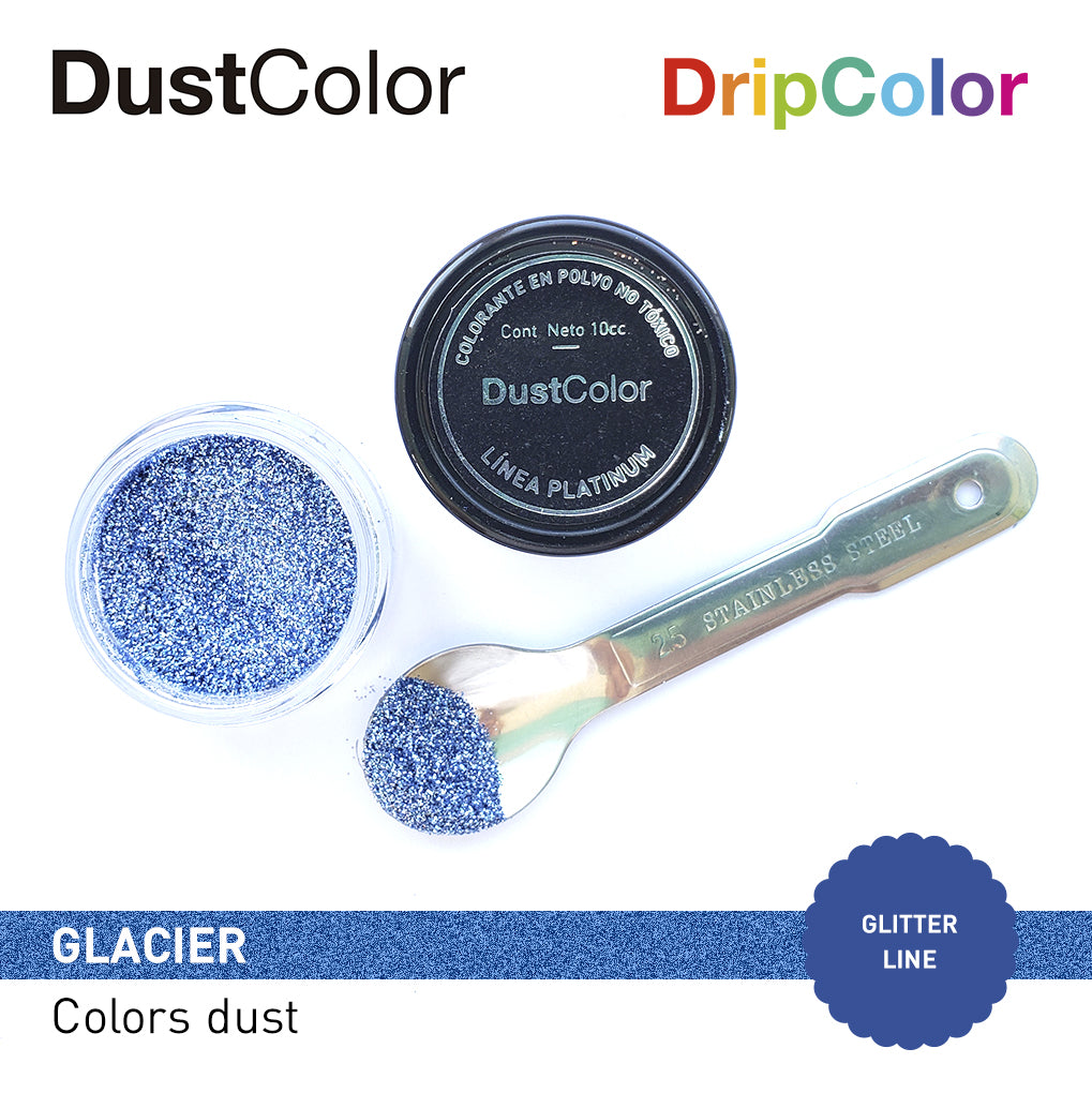 Brillo azul claro hielo. Producto NO TÓXICO ideal para decoración y manualidades. Encuéntrese con una amplia gama de creaciones que se beneficiarán de estos nuevos polvos. Cada bote DustColor contiene 10 cm3 de polvo.