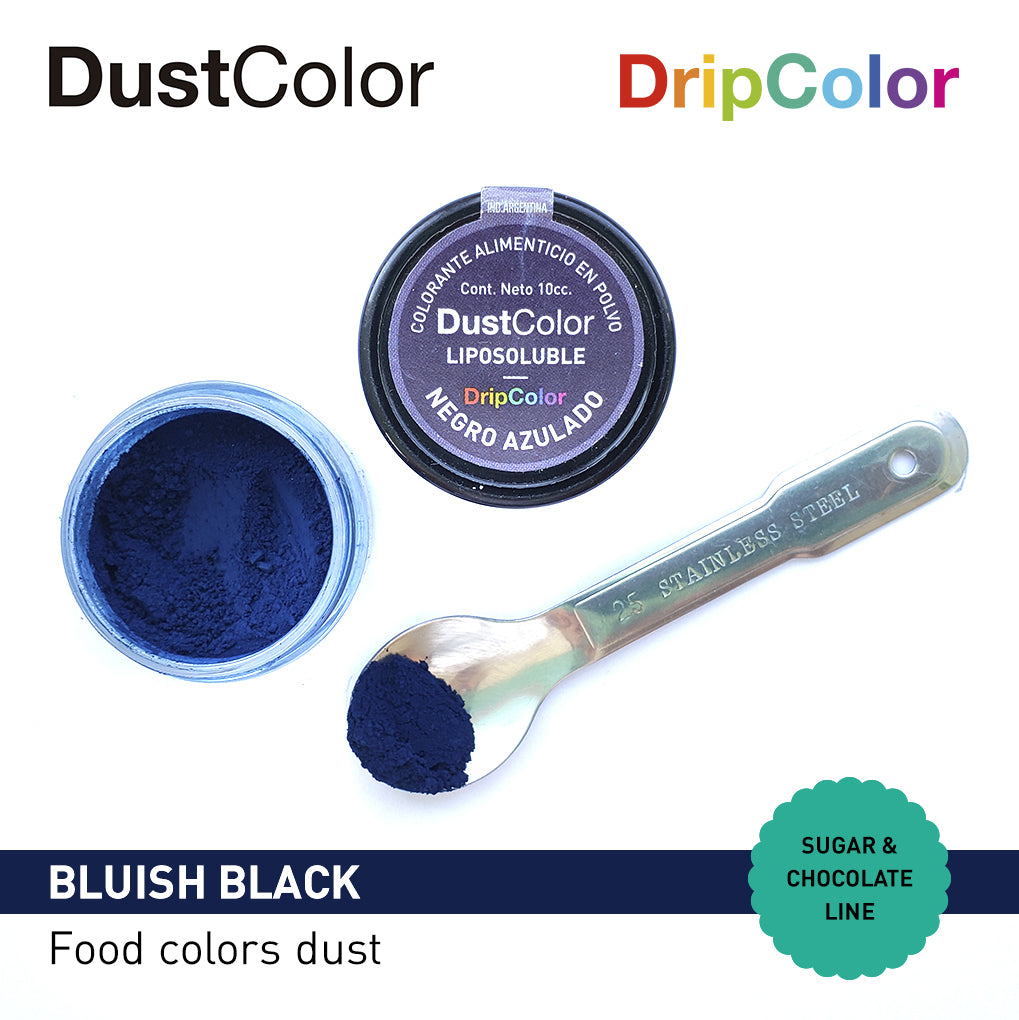 Colorante en polvo negro azulado soluble en grasa y 100% comestible. Ideal para teñir tus chocolates, manteca de cacao, cake pops, pasta de azúcar, royal icing, fondant, butter cream y más..!! También sugerimos diluir en alcohol para pintar como si fueran acuarelas.