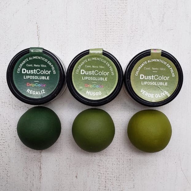 Colorante en polvo verde musgo soluble en grasa y 100% comestible. Ideal para teñir tus chocolates, manteca de cacao, cake pops, pasta de azúcar, royal icing, fondant, butter cream y más..!! También sugerimos diluir en alcohol para pintar como si fueran acuarelas.
