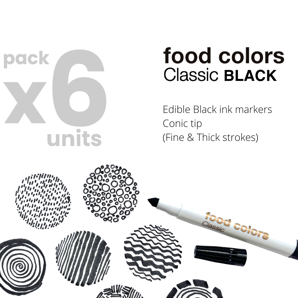 Marcador comestible de color negro. Punta cónica (trazos finos y gruesos).