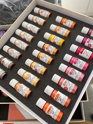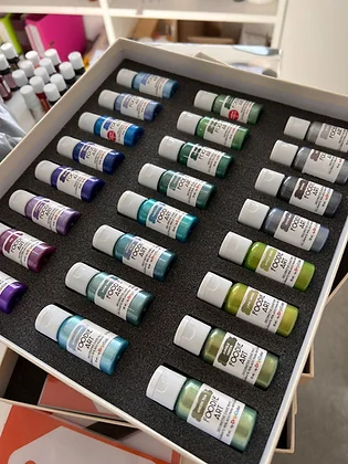 Estas pinturas están específicamente formuladas para ser aplicadas directamente para pintar decoraciones de azúcar y dar pinceladas brillantes.