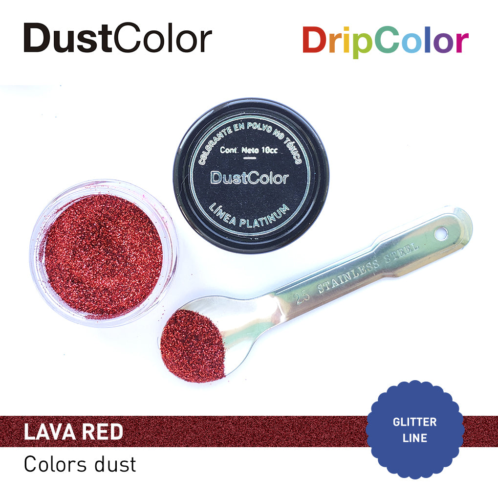 Brillo rojo lava. Producto NO TÓXICO ideal para decoración y manualidades. Encuéntrese con una amplia gama de creaciones que se beneficiarán de estos nuevos polvos. Cada bote DustColor contiene 10 cm3 de polvo.