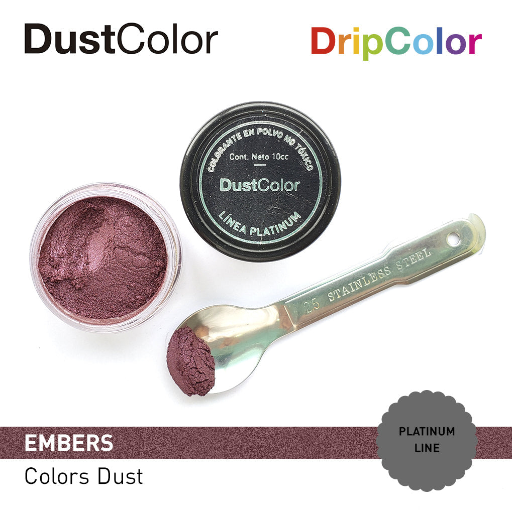 Brasas nacaradas de colores burdeos para manualidades. Producto NO TÓXICO ideal para la decoración de pasteles. Encuéntrate con una amplia gama de preparados que se beneficiarán de estos nuevos colorantes. Cada bote DustColor tiene 10cm3 de colorante.