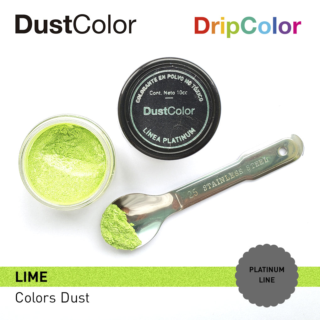 Colores verde lima nacarados para manualidades. Producto NO TÓXICO ideal para la decoración de pasteles. Encuéntrate con una amplia gama de preparados que se beneficiarán de estos nuevos colorantes. Cada bote DustColor tiene 10cm3 de colorante.
