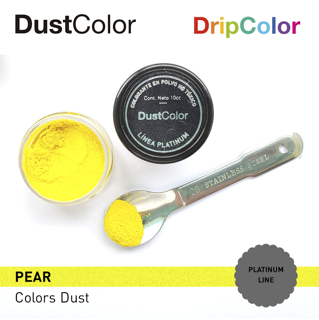 Colores amarillo perla perla para manualidades. Producto NO TÓXICO ideal para la decoración de pasteles. Encuéntrate con una amplia gama de preparados que se beneficiarán de estos nuevos colorantes. Cada bote DustColor tiene 10cm3 de colorante.