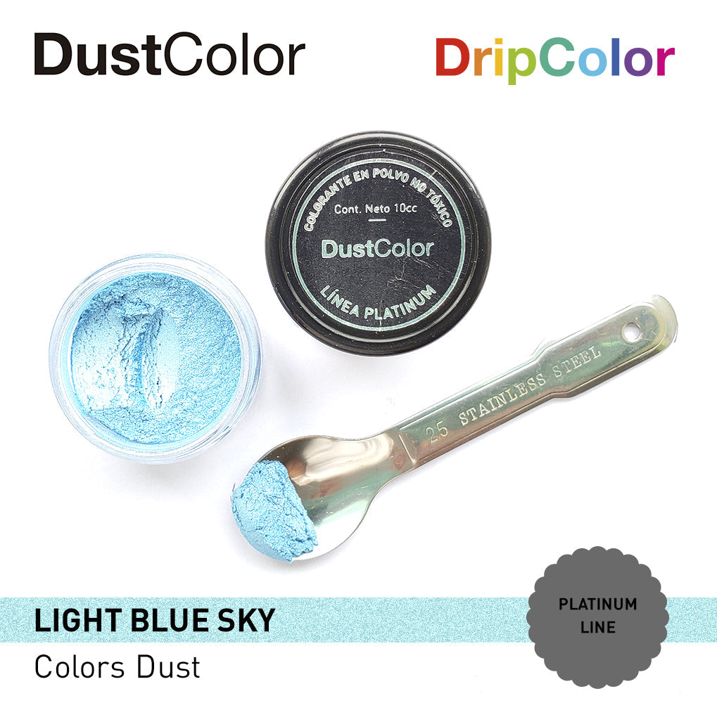 Colores azul cielo nacarados para manualidades. Producto NO TÓXICO ideal para la decoración de pasteles. Encuéntrate con una amplia gama de preparados que se beneficiarán de estos nuevos colorantes. Cada bote DustColor tiene 10cm3 de colorante.