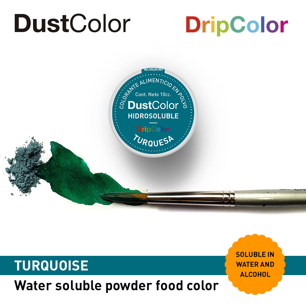 Colorante en polvo turquesa soluble en agua y 100% comestible. Ideal para teñir fondant, royal icing, cake mix, cookie mix, waffles, crema pastelera, pasta de almendras, macarrones, gelatina, pasta de azúcar, gel para decorar, dulces y más..!! También sugerimos diluir en alcohol o agua para pintar como si fueran acuarelas. Atención: No se pueden utilizar para teñir productos a base de aceite como el chocolate puro.