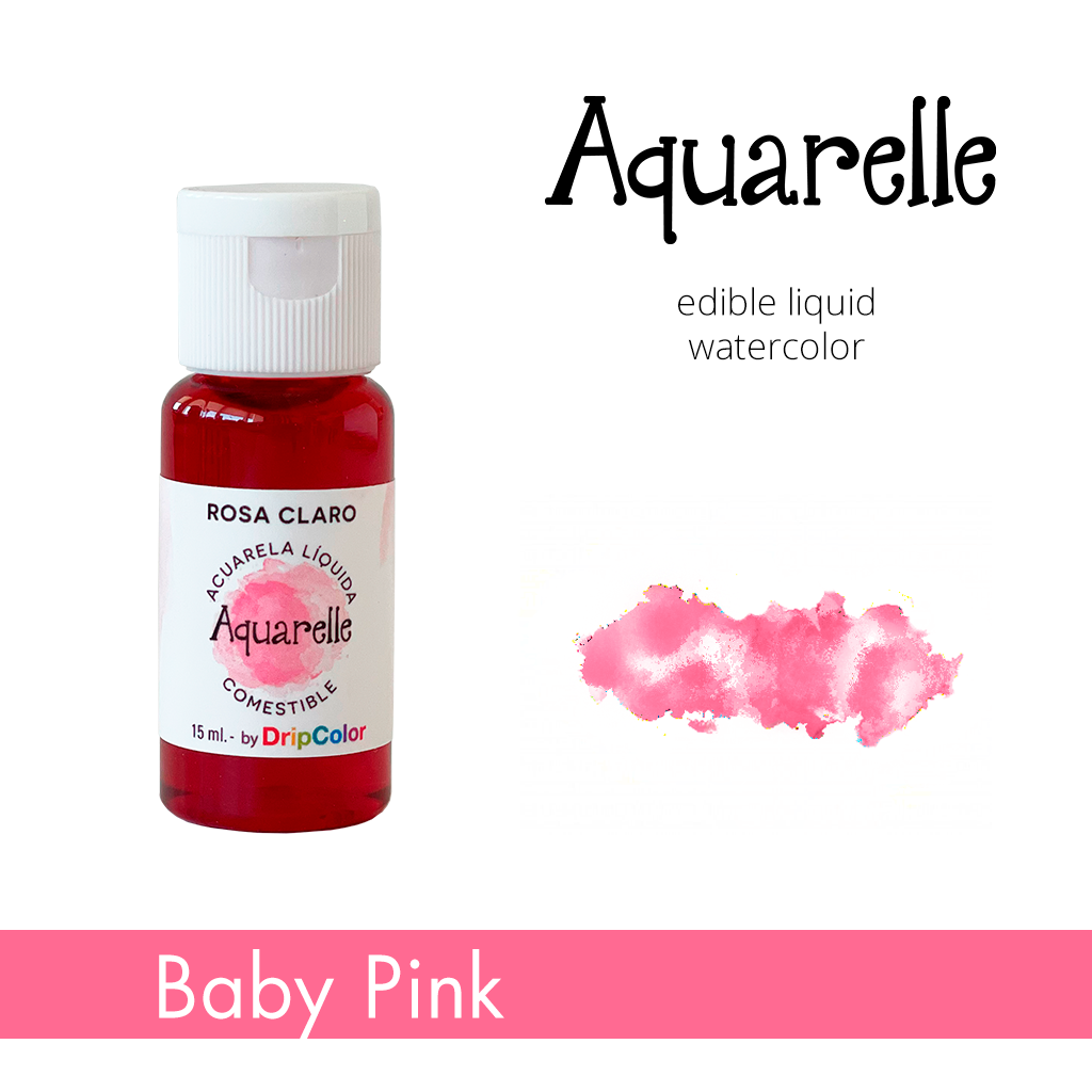 Acuarela 100% comestible rosa bebé de 15ml. Ideal para pintar sobre superficies de azúcar como fondant, glaseado, pasta de goma, pasta de modelar, merengues y macarons. Con una nueva fórmula exclusiva de secado rápido.