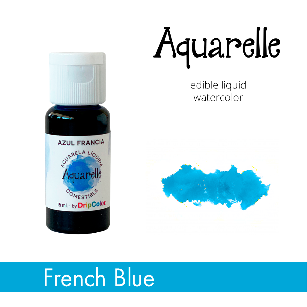 Acuarela comestible 100% azul francés de 15 ml. Ideal para pintar sobre superficies de azúcar como fondant, glaseado, pasta de goma, pasta de modelar, merengues y macarons. Con una nueva fórmula exclusiva de secado rápido.
