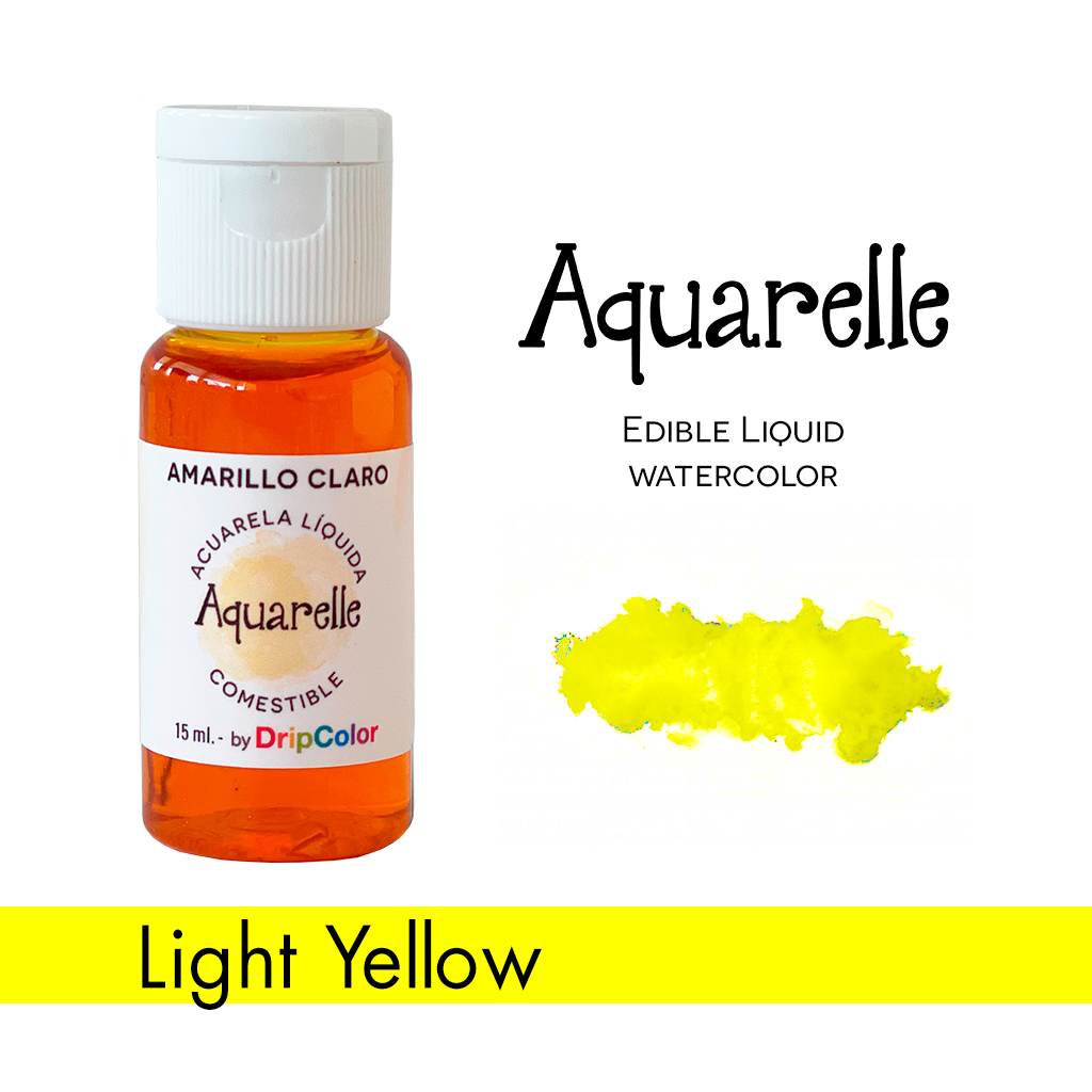 Acuarela 100% comestible de color amarillo claro de 15 ml. Ideal para pintar sobre superficies de azúcar como fondant, glaseado, pasta de goma, pasta de modelar, merengues y macarons. Con una nueva fórmula exclusiva de secado rápido.