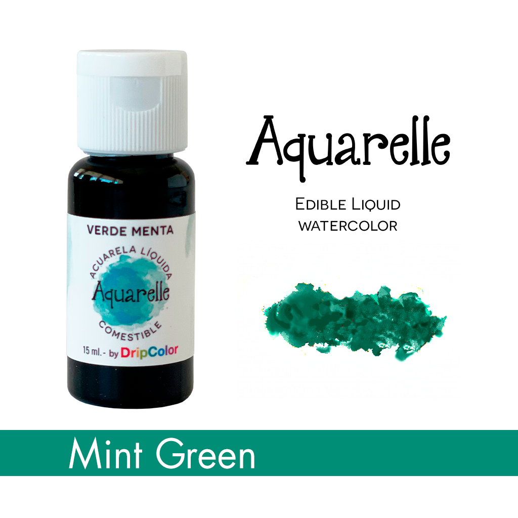 Acuarela 100% comestible verde menta de 15ml. Ideal para pintar sobre superficies de azúcar como fondant, glaseado, pasta de goma, pasta de modelar, merengues y macarons. Con una nueva fórmula exclusiva de secado rápido.