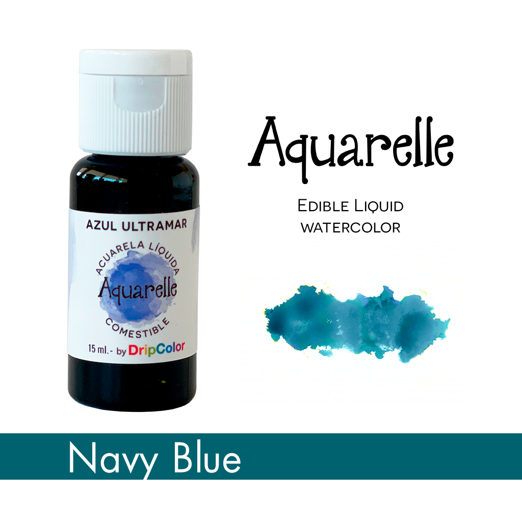 Acuarela 100% comestible azul marino de 15 ml. Ideal para pintar sobre superficies de azúcar como fondant, glaseado, pasta de goma, pasta de modelar, merengues y macarons. Con una nueva fórmula exclusiva de secado rápido.