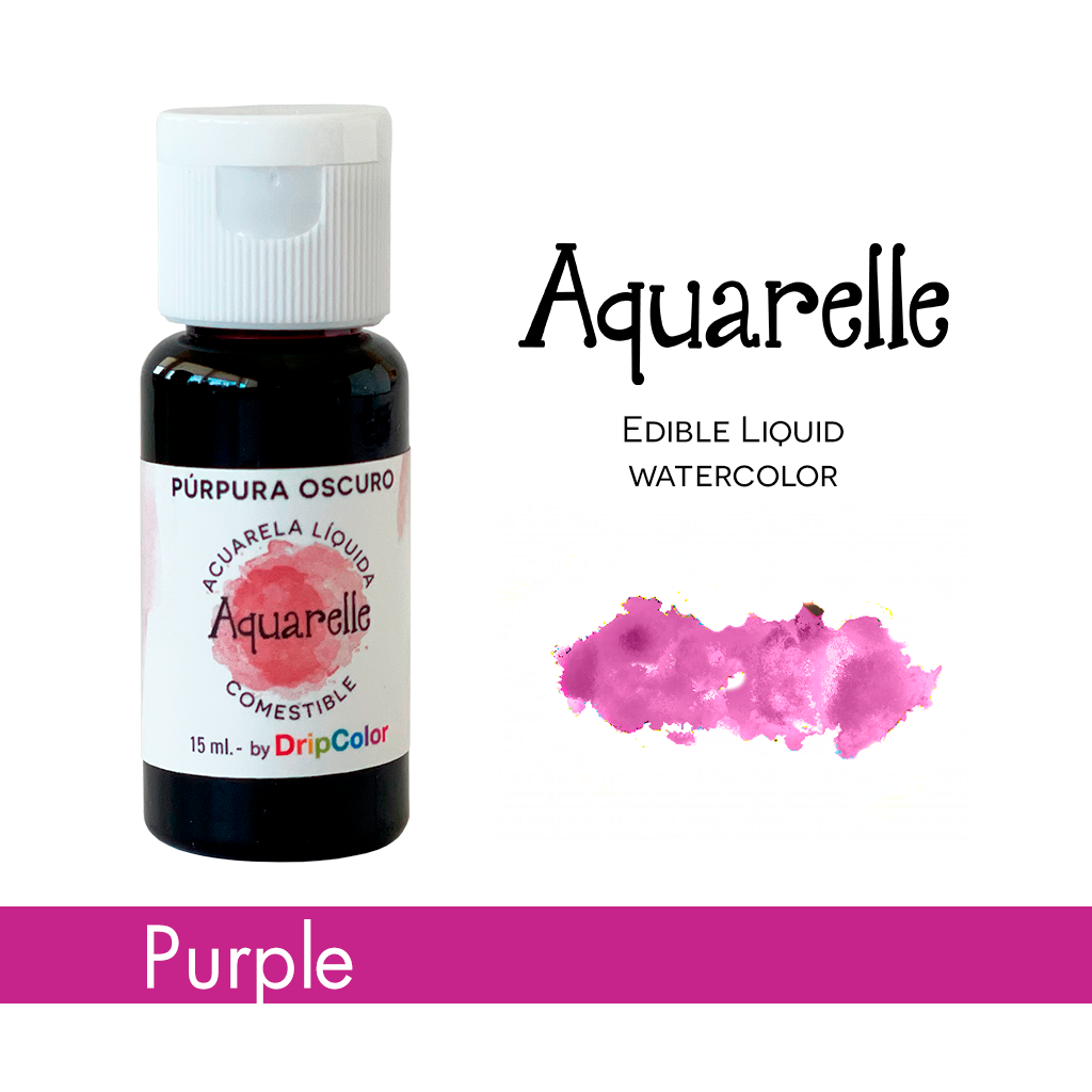 Acuarela 100% comestible morada de 15 ml. Ideal para pintar sobre superficies de azúcar como fondant, glaseado, pasta de goma, pasta de modelar, merengues y macarons. Con una nueva fórmula exclusiva de secado rápido.