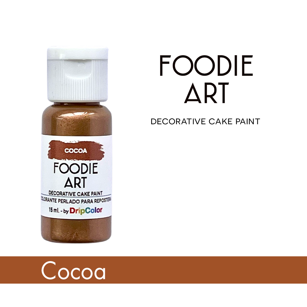 Cacao cremoso y perlado Color NO TÓXICO. Este producto es ideal para pintar y dar efectos de brillo a las decoraciones hechas en fondant, crema de mantequilla con costra fría, galletas de azúcar, malvaviscos, confitería, ganache, chocolate para modelar, macarons, pasta de goma y más..! Cada botella de Foodie Art contiene 15 ml.