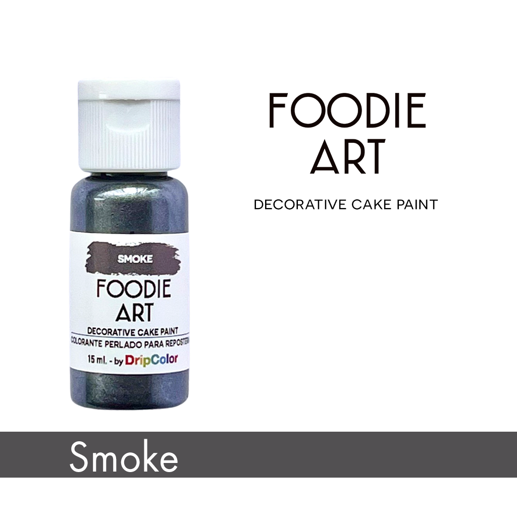 Color humo cremoso y nacarado NO TÓXICO. Este producto es ideal para pintar y dar efectos de brillo a las decoraciones hechas en fondant, crema de mantequilla con costra fría, galletas de azúcar, malvaviscos, confitería, ganache, chocolate para modelar, macarons, pasta de goma y más..! Cada botella de Foodie Art contiene 15 ml.