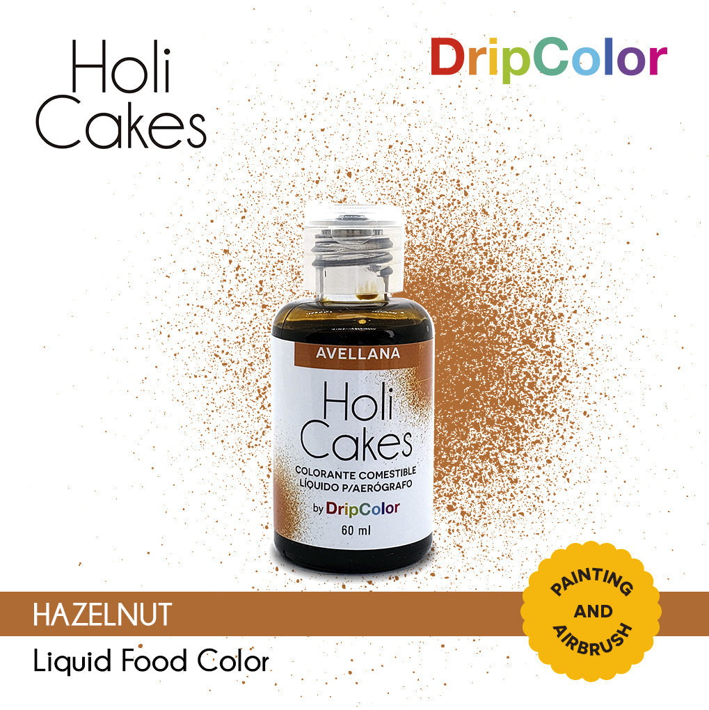 Color marrón avellana Colorante líquido 100% comestible. Holi Cakes es una línea de colorantes alimentarios líquidos para aerógrafos; ideal para dar acabados coloridos a Fondant, merengues, royal glacé y papel de arroz. ¡Puedes usarlo con tu aerógrafo o con un pincel imitando el uso de una acuarela!