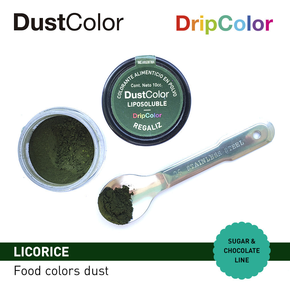 Licorice green fat soluble & 100% edible powder colorant. Ideal to dye your chocolates, cocoa butter, cake pops, sugar paste, royal icing, fondant, butter cream and more..!! We also suggest to dilute in alcohol to paint as if they were watercolors.