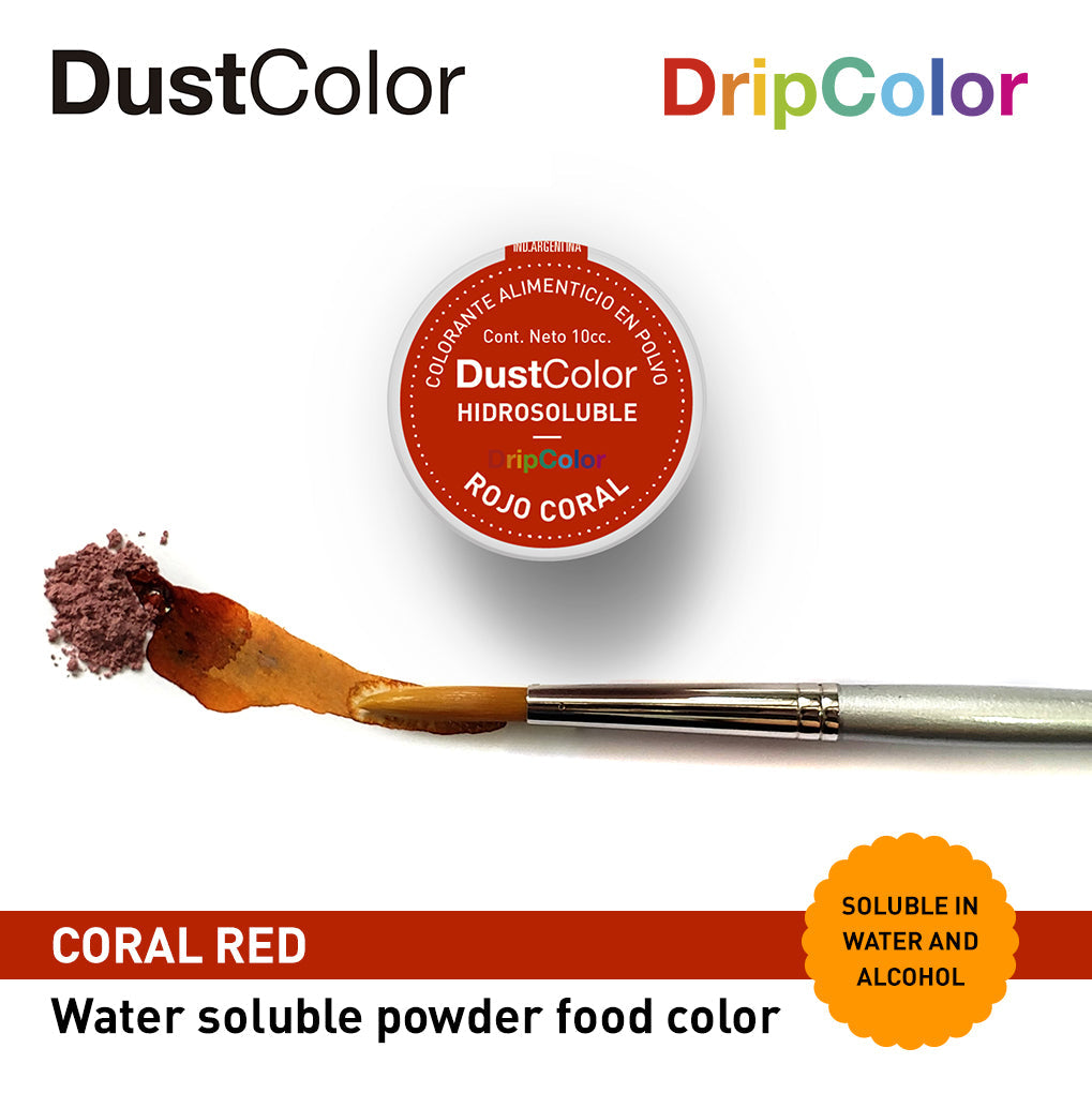 Coral red water soluble & 100% edible powder colorant. Ideal to dye fondant, royal icing, cake mix, cookie mix, waffles, pastry cream, almond paste, macaroons, jelly, sugar paste, decorating gel, candy and more..!! We also suggest to dilute in alcohol or water to paint as if they were watercolors. Attention: They cannot be used to dye oil based products such as pure chocolate.