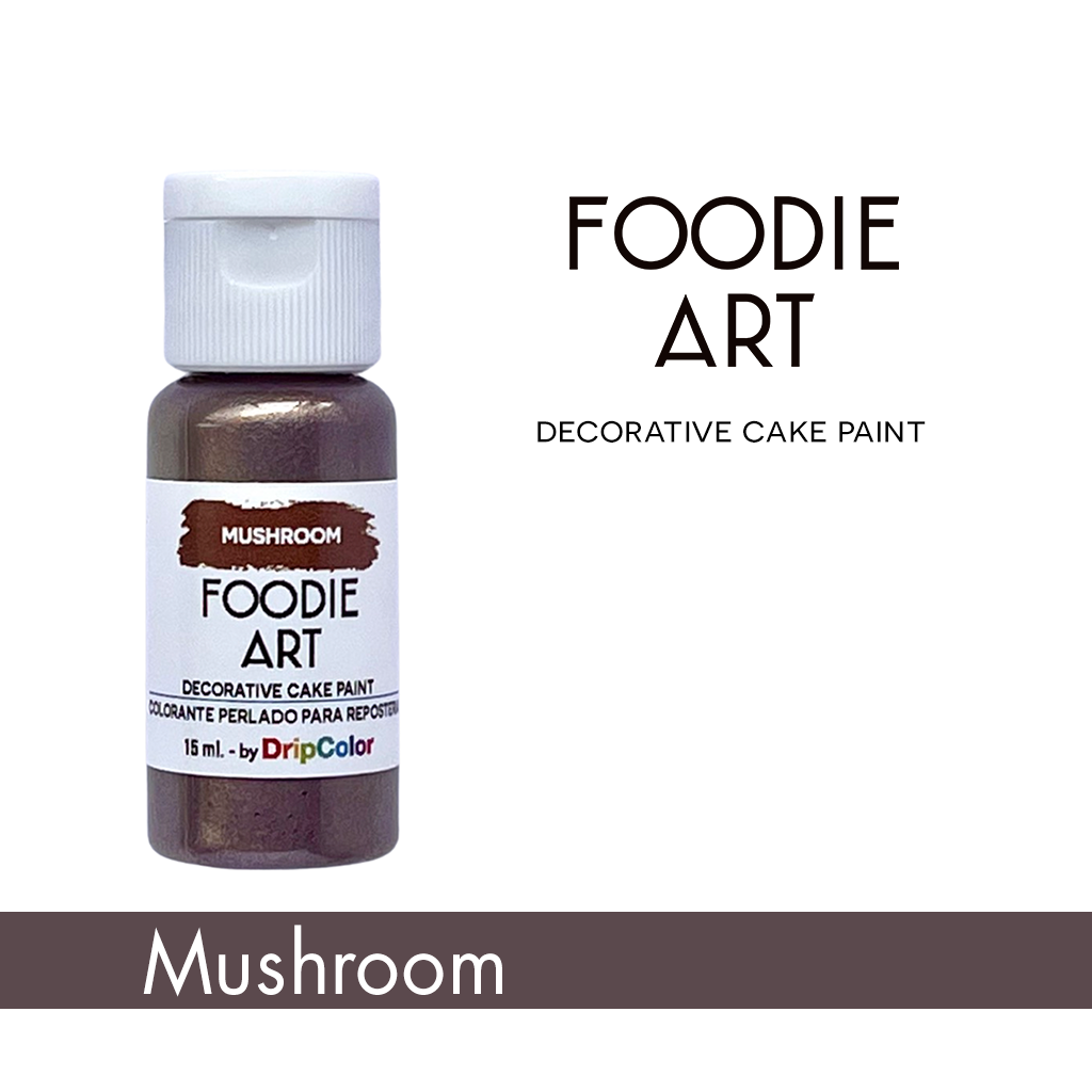 Creamy & pearly mushroom NON-TOXIC color. This product is ideal to paint and give shiny effects to decorations made in fondant, chilled crusted buttercream, sugar cookies, marshmallows, confectionery, ganache, modeling chocolate, macarons, gum paste, and more..! Each bottle of Foodie Art contains 15 ml.